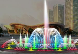 彩色喷泉水景