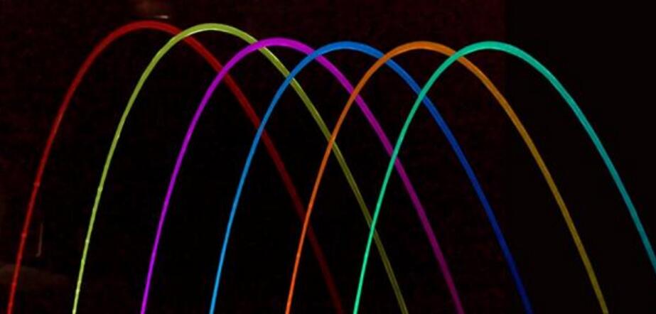 光亮跳泉所形成的水柱沿着设定的轨迹喷射,一条条大小各异的跳跃拱门,抛向半空中,随即又准确无误的定位落下,在空中挂起一道幽雅的弧线。水流即可以长流线形存在,首尾连贯,如同一条玻璃水柱,此时形成的水景通常我们称其为波光泉;通过电子快门的精确控制,也可以将其切割成一段段的赋有生命力的水段,中间有一定的间隔存在,可连续、可断续、链结成弧度,我们称其为波光跳泉。波光跳泉水段形成的长短及出水的速度可以根据需要实际设计思路调节,在控制器的控制下任意跳跃,连绵不绝。