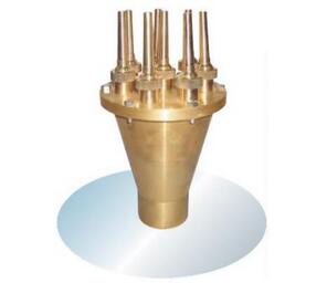 中心直上喷头是在同一个配水箱上安装许多万向直流喷嘴,当这些喷嘴规格相同时,喷出的水姿笔直;当这些喷嘴规格不完全相同时,大小喷嘴布设得当,喷出的水姿粗壮有力,层次分明、主题突出。是大型喷泉的主要喷头。该喷头也叫中心水柱.