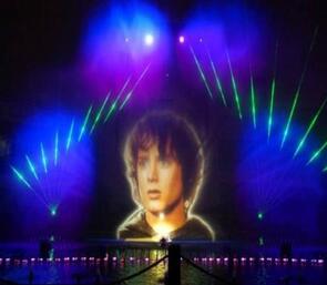 激光水幕电影采用特殊的投影机播放,使用的影片也是专门为水幕电影特制的影带。由于电影的屏幕是透明的水膜,因此在电影播放时会有一种特殊的光学效果,屏幕的视觉穿透性可使画面具有一种立体的感觉,影片的内容可与水面巧妙的结合,更有一种身临其境般的奇幻感觉。水幕电影是通过高压水泵和特制水幕发生器,将水自下而上,高速喷出,雾化后形成扇形“银幕”,由专用放映机将特制的录影带投射在“银幕”上,形成水幕电影。当观众在观摩电影时,扇形水幕与自然夜空融为一体,当人物出入画面时,好似人物腾起飞向天空或自天而降,产生一种虚无缥缈和梦幻的感觉,令人神往。其控制方法有:编程控制、直接控制和实用程序控制,水幕电影影视效果奇特、新颖并是较佳的广告宣传工具,各种广场及宽阔的水面均可按装水幕电影。